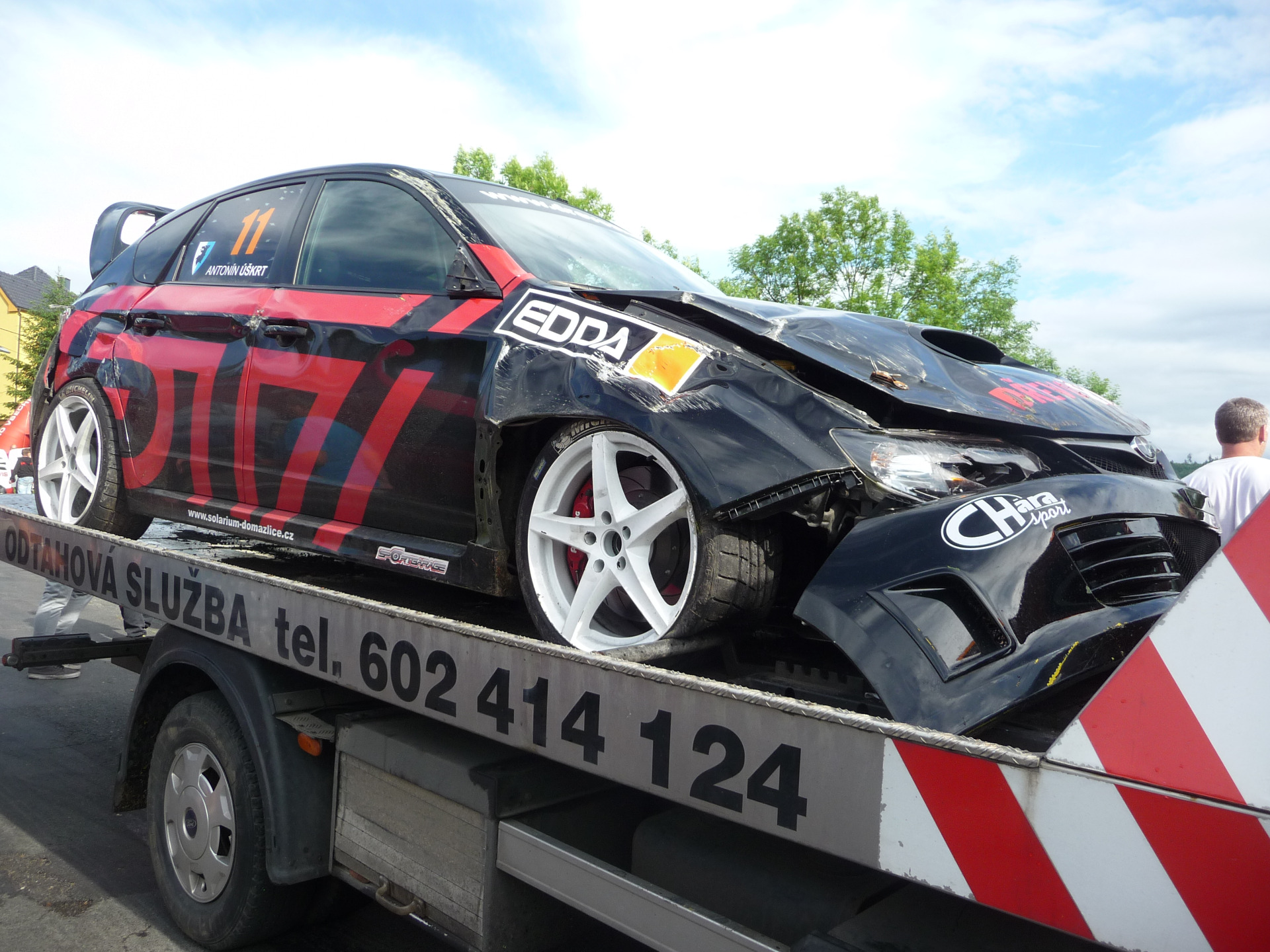 Video z pražského rallysprintu-převracení nabouraného vozidla.